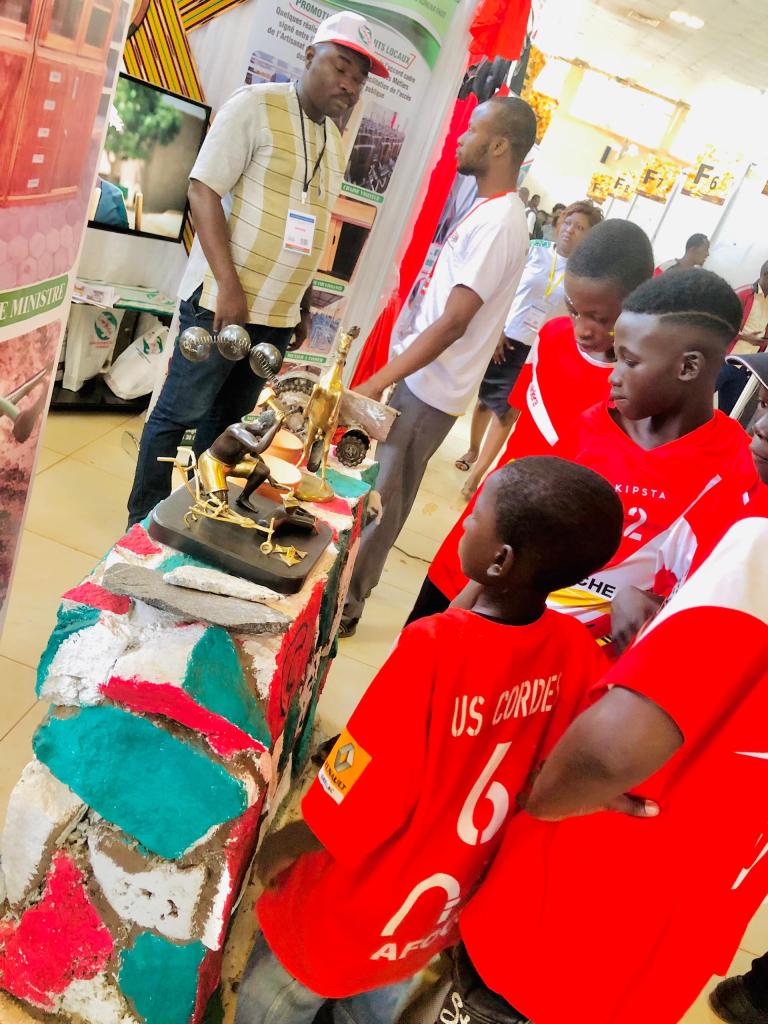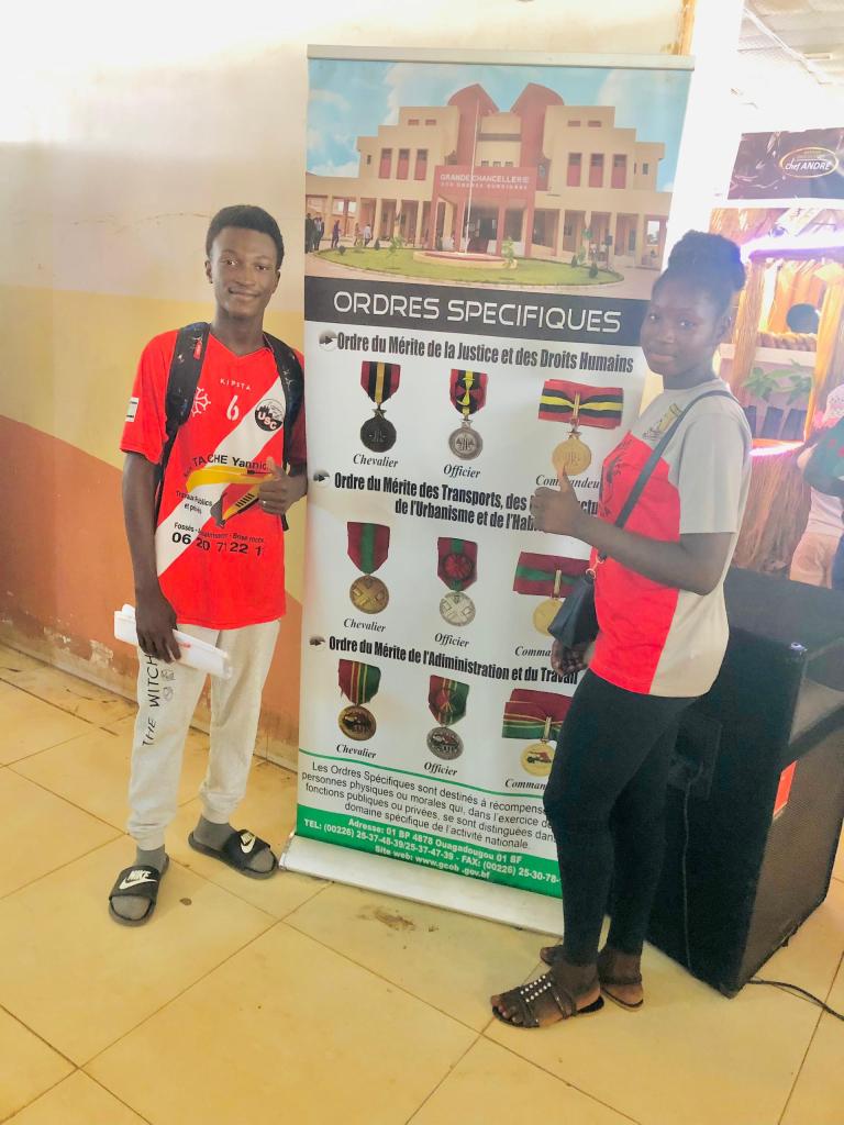 Encadrés par 6 responsables d’AFOCSI, ils ont pu parcourir de nombreux stands dans les différents pavillons du salon : poteries, pagnes et tissus, produits agro-alimentaires, mobilier, bijoux, sculptures et masques, etc. Au stand de la Chancellerie, ils ont eu droit à une explication détaillée sur les différents insignes de décoration et leur signification.