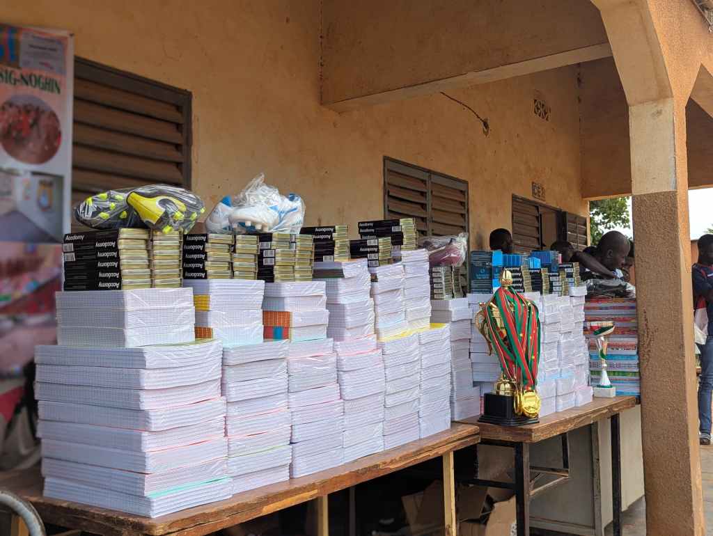 Cette journée est aussi traditionnellement l’occasion de préparer la prochaine rentrée scolaire, avec la remise de fournitures aux pensionnaires d’AFOCSI et l’octroi de bourses à des élèves orphelins ou démunis. LMDO y a contribué cette année à hauteur de 1 469 000 francs cfa, soit environ 2 240 euros (sur un montant total de 1 840 000 francs cfa).